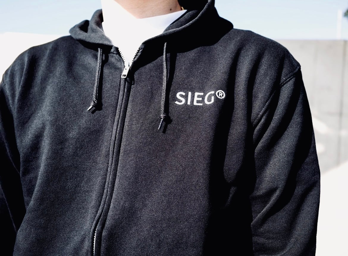 スムースタッチのコットン素材を使用した、オリジナルのフルジップフーディー。フロントには「SIEG ®︎」 のグラフィックを配し、いつでもサッと羽織れる手軽さが特徴。